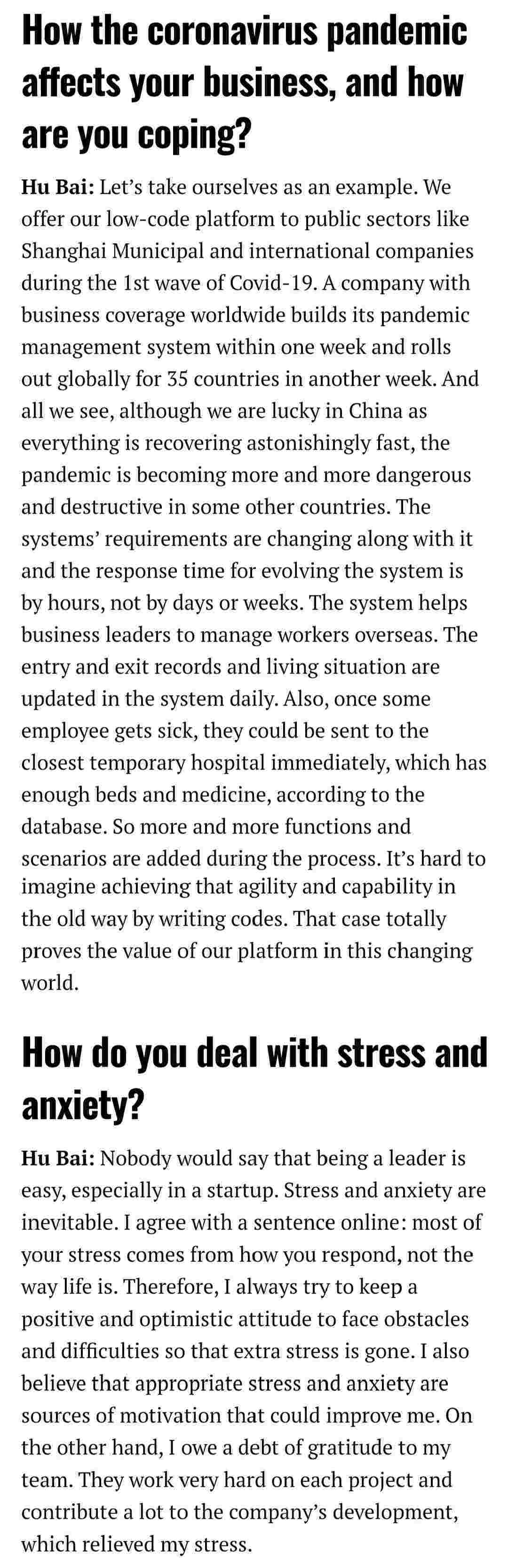 2021年年初,,,,,,爱湃斯科技CEO胡柏受邀接受法媒Startup.info的专访,,,,,,,,,,,,与Startup info的读者分享了自己的创业经历、、、、、、、、、、、、以及低代码平台小微钱包的创新之处。。。。。。。。。。。。。。
